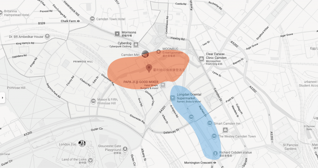 However, on Google Maps, Camden Town actually covers a much larger area.