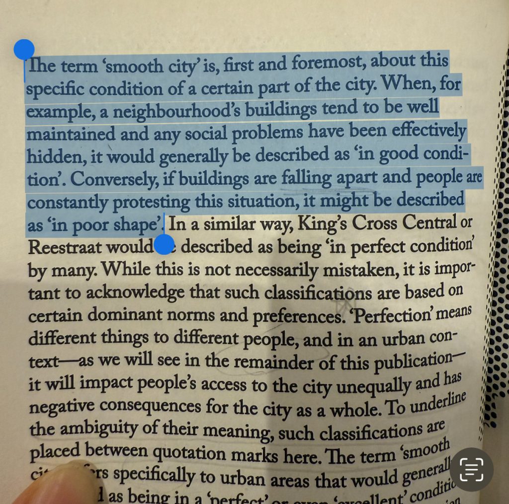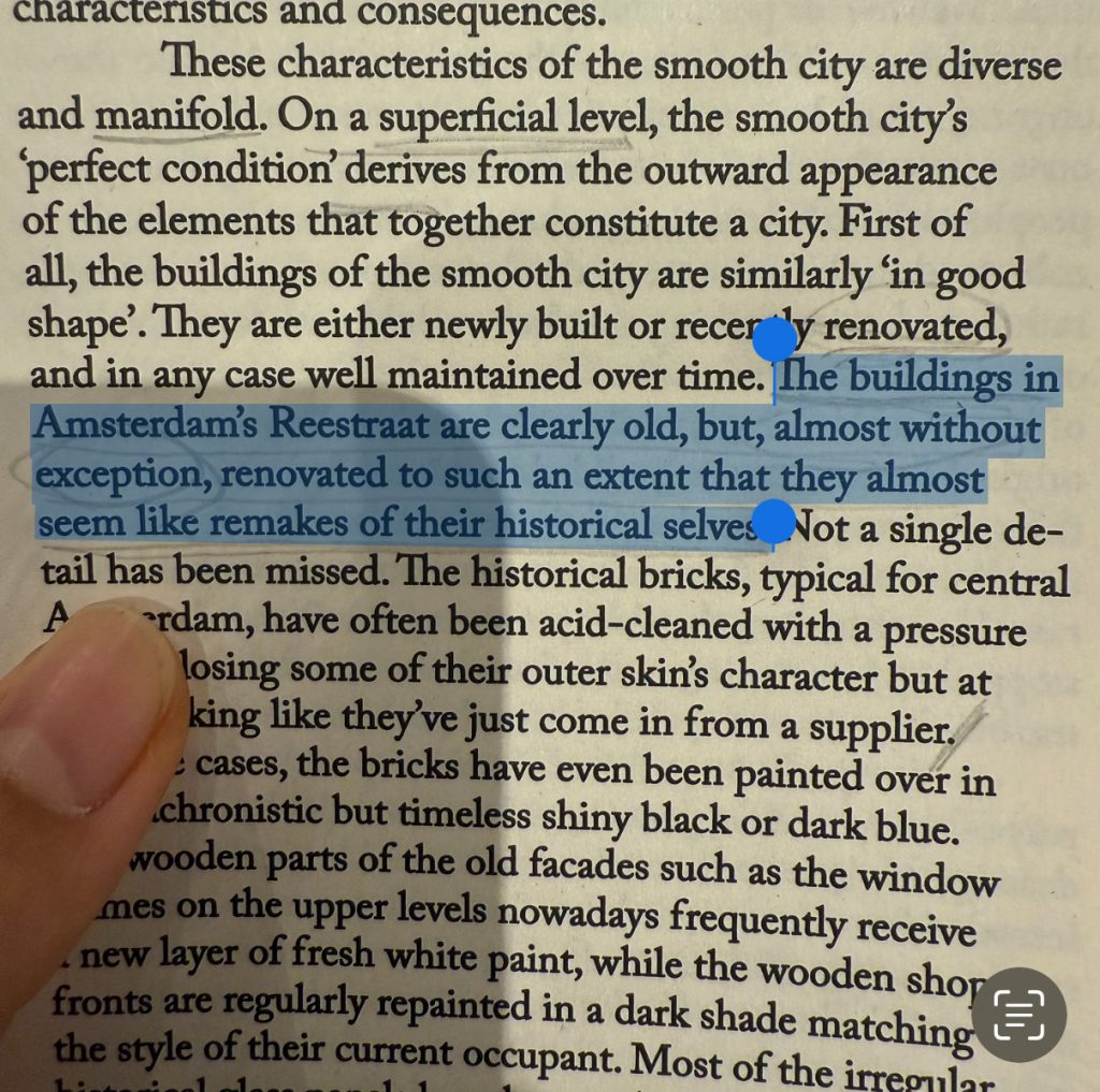 In the book Smooth City, the author discusses Reestraat in Amsterdam and King’s Cross in London —