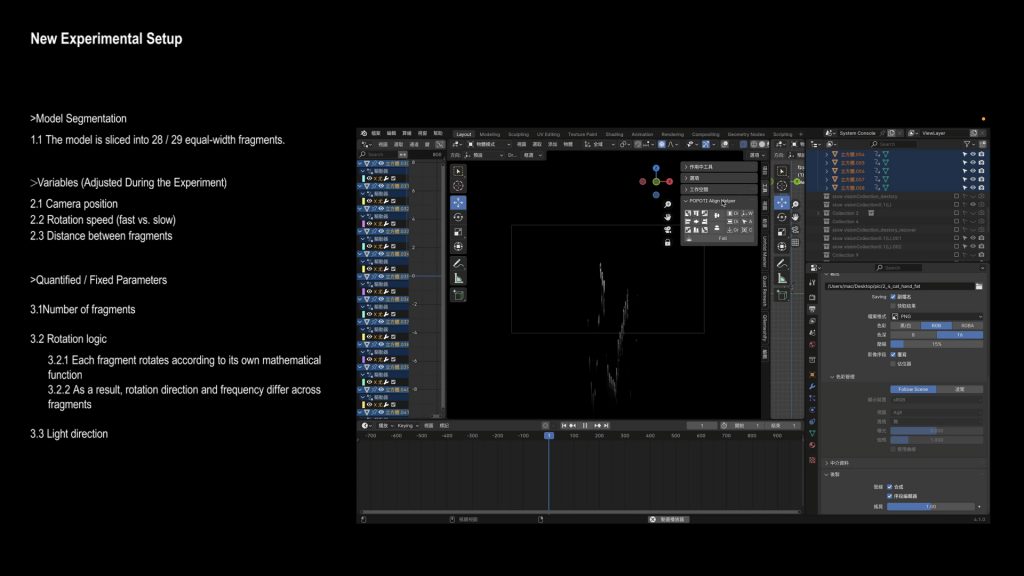 - At the same time, some things were kept fixed. For example: the number of fragments, the rotation logic —each fragment follows its own equation,