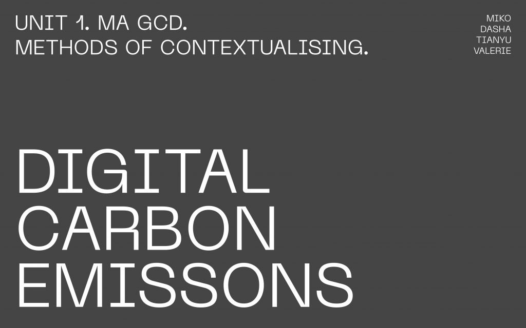 “Hi everyone — we’re Miko, Dasha, Tianyu, and Valerie. Our project is about digital carbon emissions that happen quietly when we use devices, WiFi, storage, and cloud services.