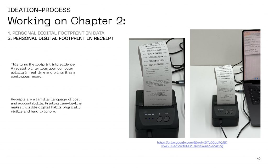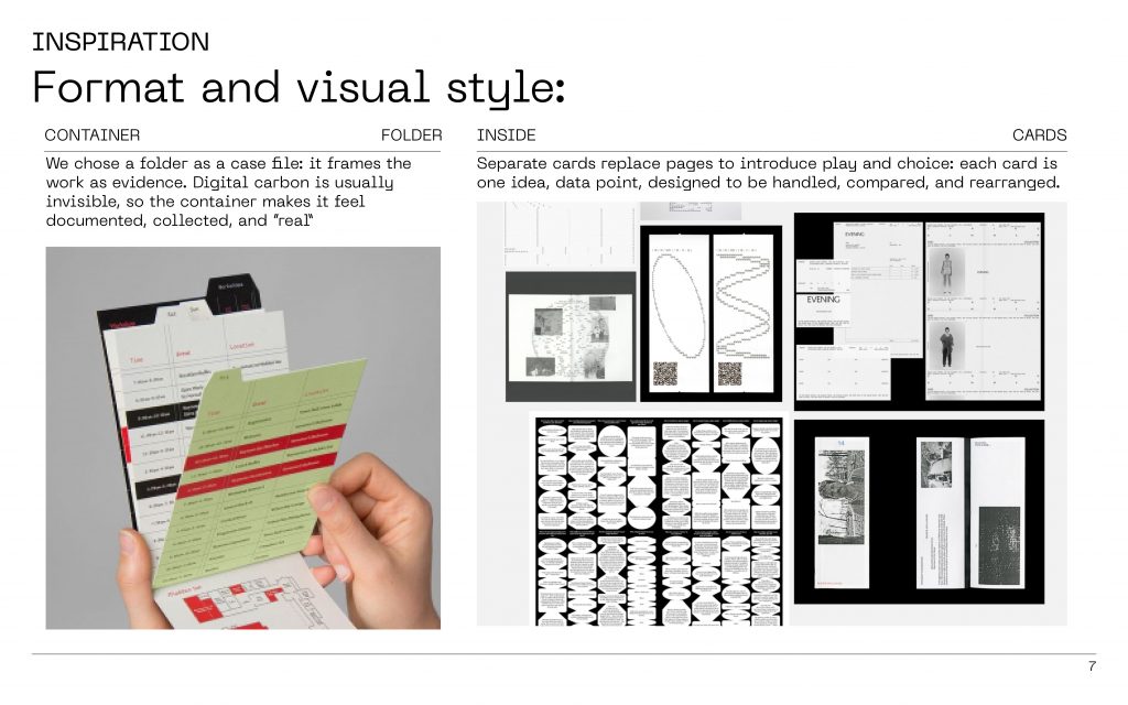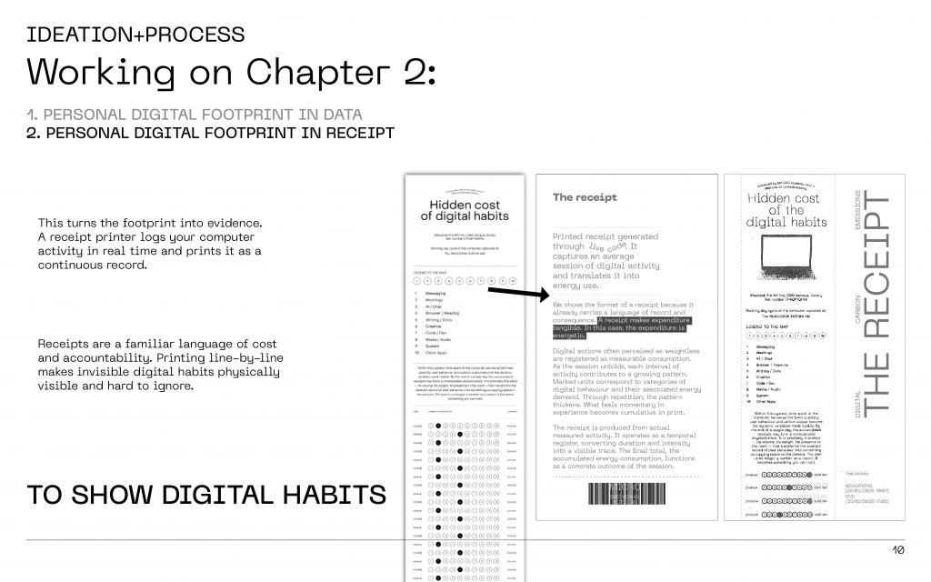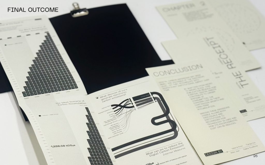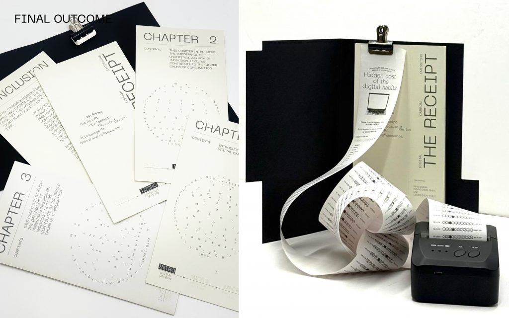 “This is the final outcome.The folder frames it like evidence.The receipt becomes the physical ‘proof’ of digital habits.And together, they shift digital carbon from something invisible and forgettable into something you can literally hold.”