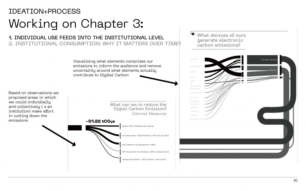 We propose internal measures — like switching desktops to laptops, better sleep/shutdown habits— that we observed was a common problem in the library, smarter network load management, WiFi access point consolidation, storage optimisation.