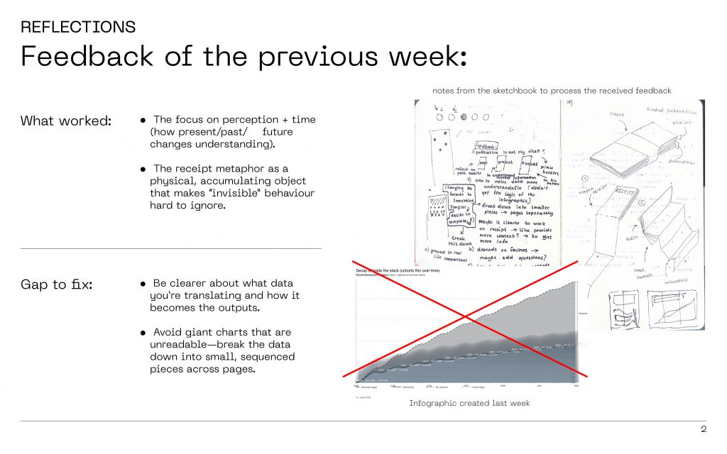 Second — the receipt metaphor worked well because it turns digital behaviour into something physical that builds up.