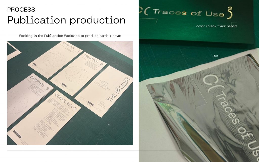 We start with a digital layout, we test outputs in code, we print small prototypes, and then we integrate that printed material back into the publication.