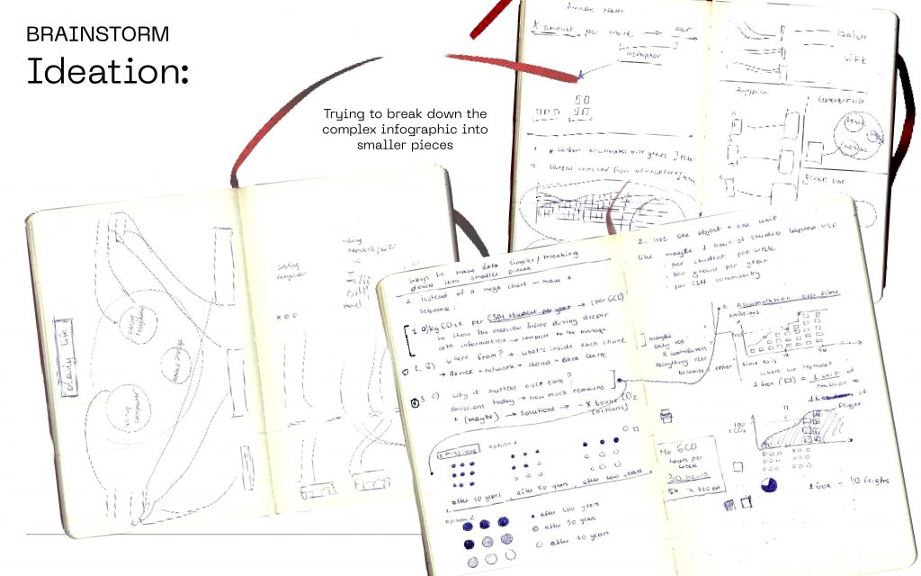 We also translate 500 tonnes into human comparisons — like driving around the Earth many times, millions of phone charges, or emails sent — just to make the scale feel graspable instead of abstract.”